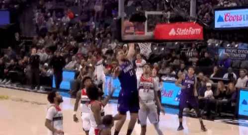 第一节比赛,萨博尼斯回归后上演精彩单臂暴扣,首节国王已领先奇才11分。