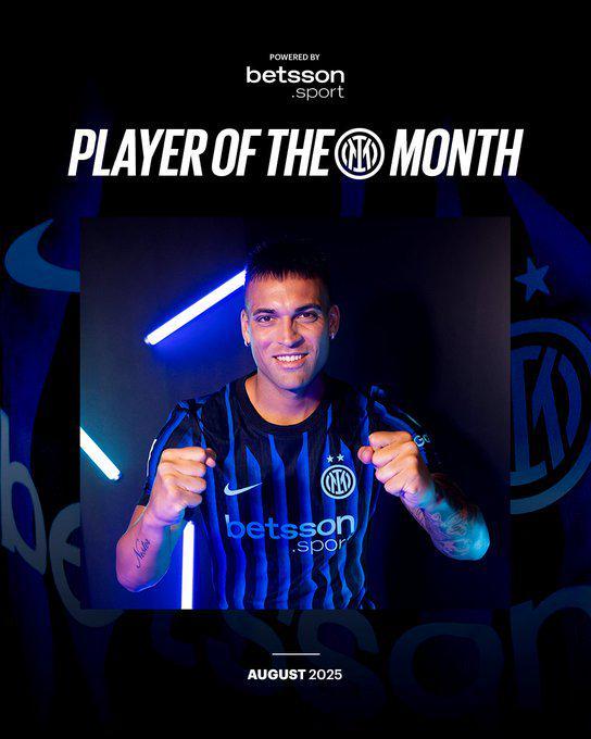 在国米官方在社媒发布的投票中,队长劳塔罗获得了最多的球迷票数,成功当选8月最佳球员。